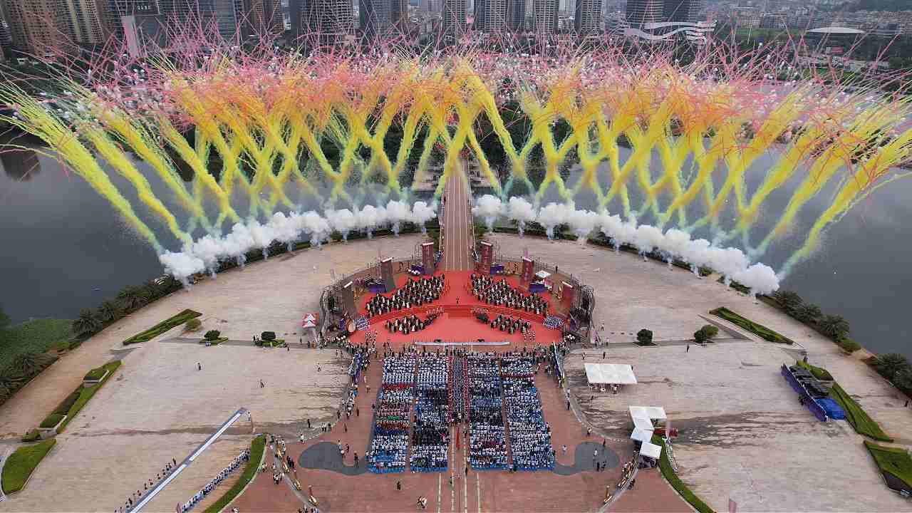 飞虎烟花燃动玉溪:日景烟花点亮聂耳合唱周