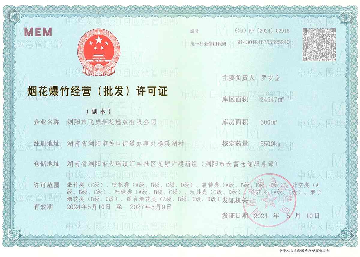 烟花爆竹经营许可证